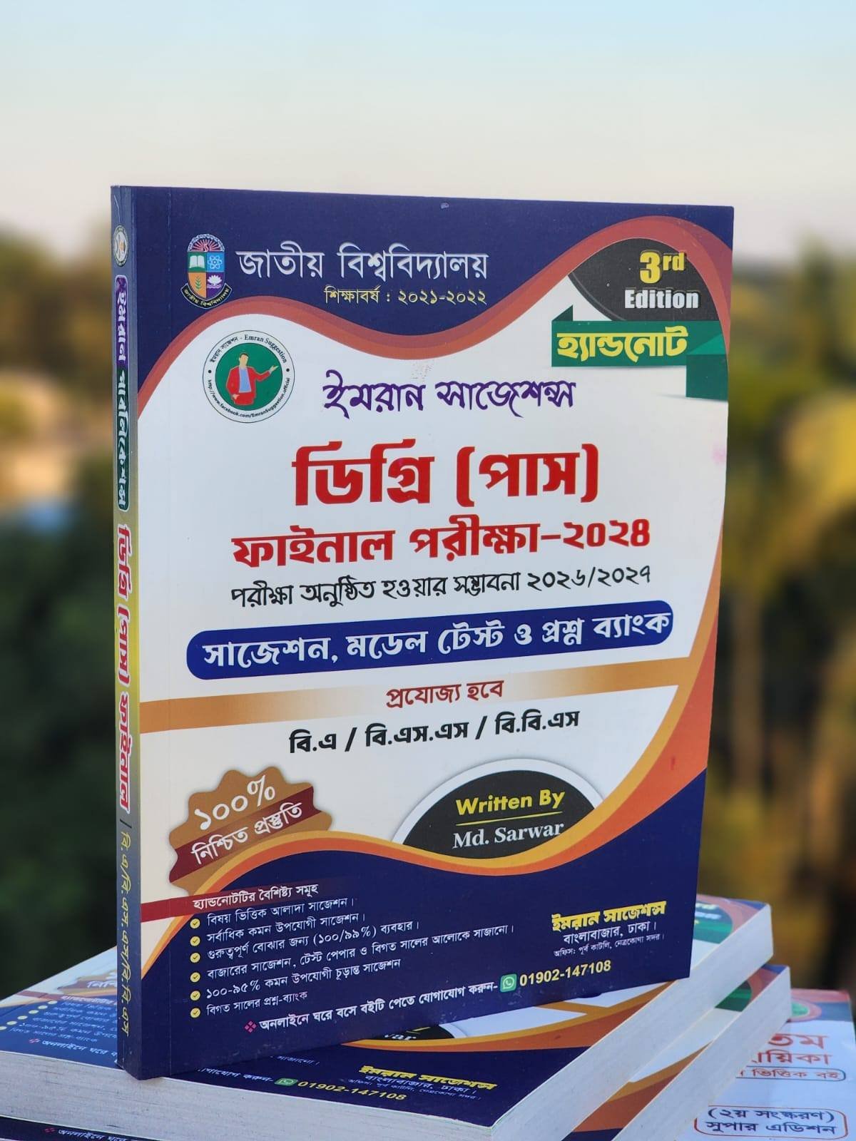 জাতীয় বিশ্ববিদ্যালয়ের ডিগ্রি (পাস) ৩য় বর্ষের শিক্ষার্থীদের জন্য ‘ইমরান সাজেশনস’। বি.এ, বি.এস.এস এবং বি.বি.এস শাখার শিক্ষার্থীদের জন্য এই বইটিতে সাজানো হয়েছে এক্সক্লুসিভ সাজেশন, মডেল টেস্ট এবং প্রশ্ন ব্যাংক।